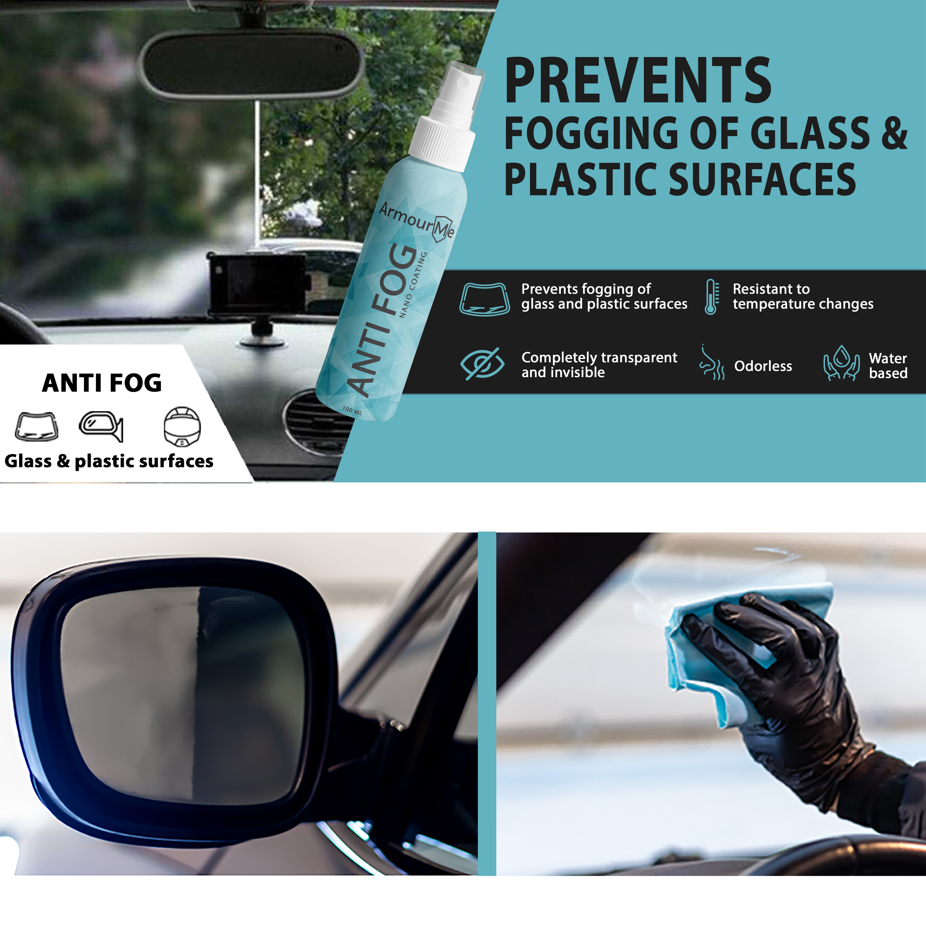 - Keep your vision clear on the road with ArmourMe Anti-fog spray. Perfect for use on car windshields and helmet visors, this advanced formula prevents fogging for up to two weeks.